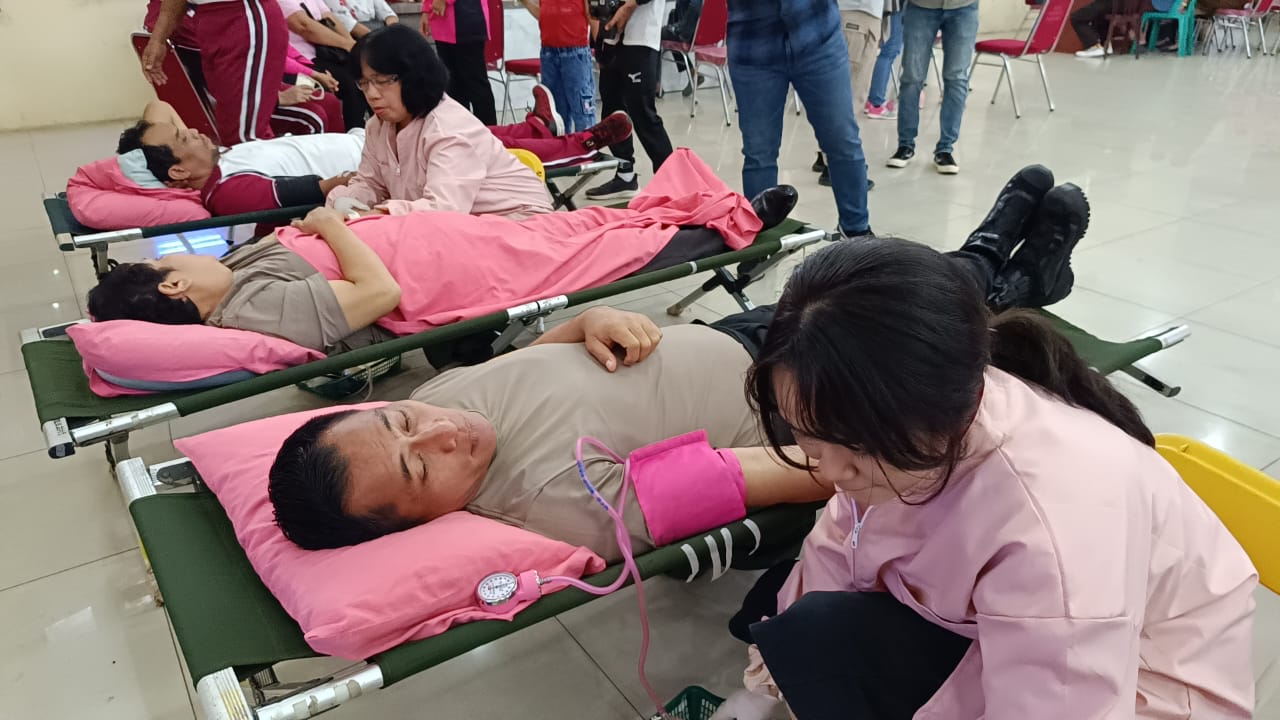 Kapolres Pelabuhan Belawan, AKBP Josua Tampubolon, SH MH aksi kemanusiaan dengan mendonorkan darahnya di Aula Wira Satya Polres Pelabuhan Belawan