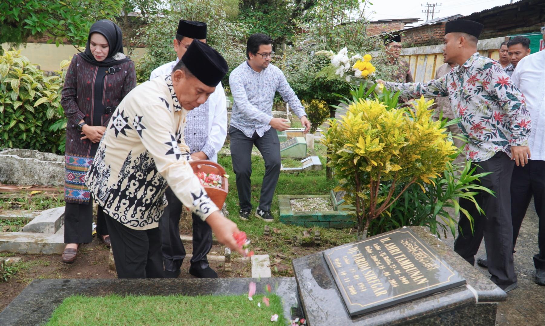 Pertama, Bupati Deli Serdang, H Ashari Tambunan didampingi sejumlah pimpinan organisasi perangkat daerah (OPD) berziarah ke makam mantan Bupati, Drs H Amri Tambunan dan Baharoeddin Siregar di Tempat Pemakaman Umum (TPU), Jalan Avros, Sekolah Menengah Atas (SMA) Negeri 2 Medan, Kecamatan Medan Polonia.