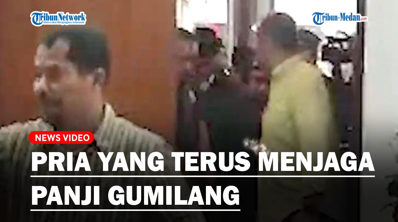 Pada momen itu, ada seorang pria yang terus mengamankan Panji Gumilang.