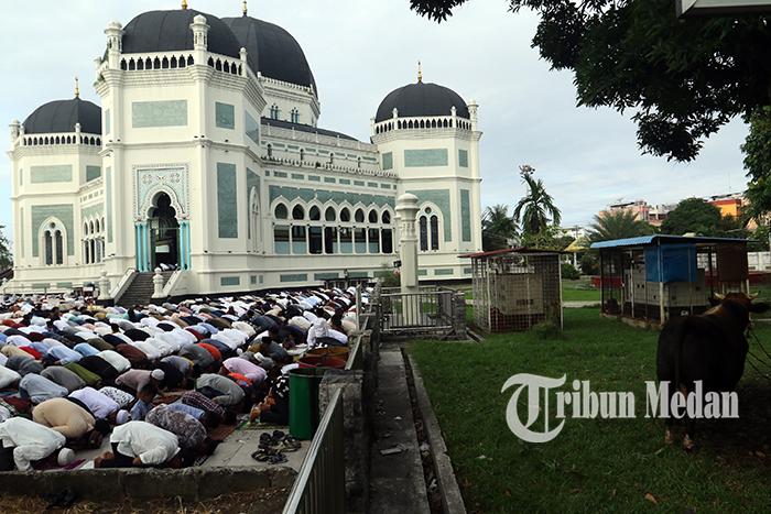 Berita Foto: Ribuan Umat Islam Melakasanakan Salat Iduladha di Masjid Raya Al-Mashun Medan