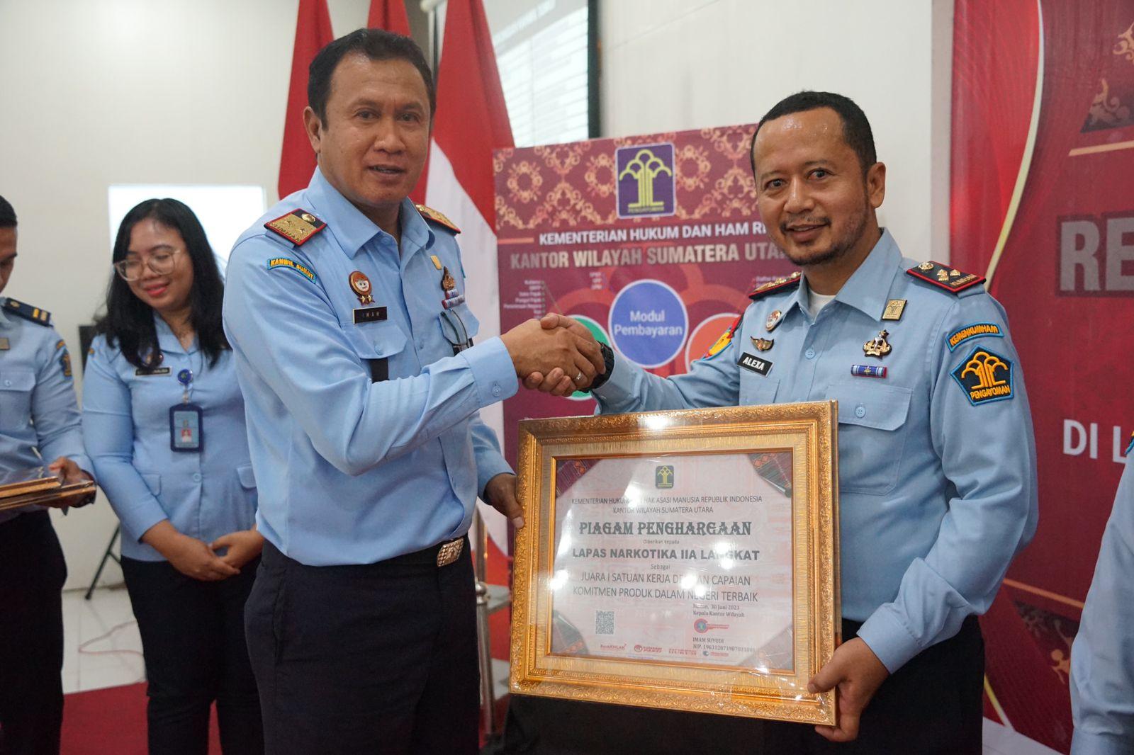 Lapas Narkotika Langkat sabet 2 penghargaan sekaligus sebagai Satuan Kerja dengan Capaian Komitmen Produk Dalam Negeri Terbaik 1 dan Pejabat Pembuat