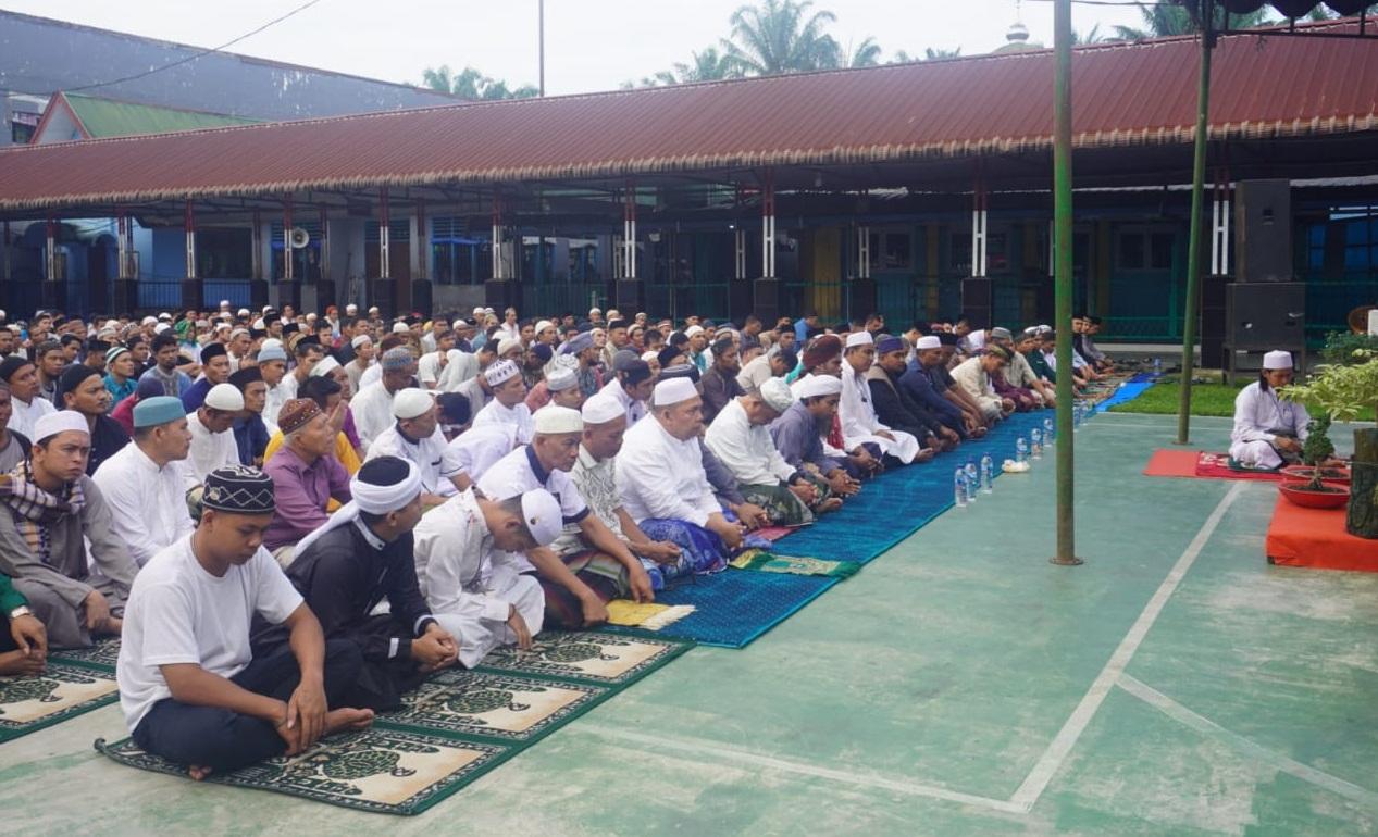 TRIBUN-MEDAN.com, RANTAUPRAPAT - Lembaga Pemasyarakatan (Lapas) Kelas IIA Rantauprapat Kantor Wilayah Kementerian Hukum dan Hak Asasi Manusia Sumatera Utara laksanakan sholat Idul Adha 1444 Hijriah berjamaah dengan Warga Binaan Pemasyarakatan (WBP) dilapangan upacara, Kamis (29/6/2023).