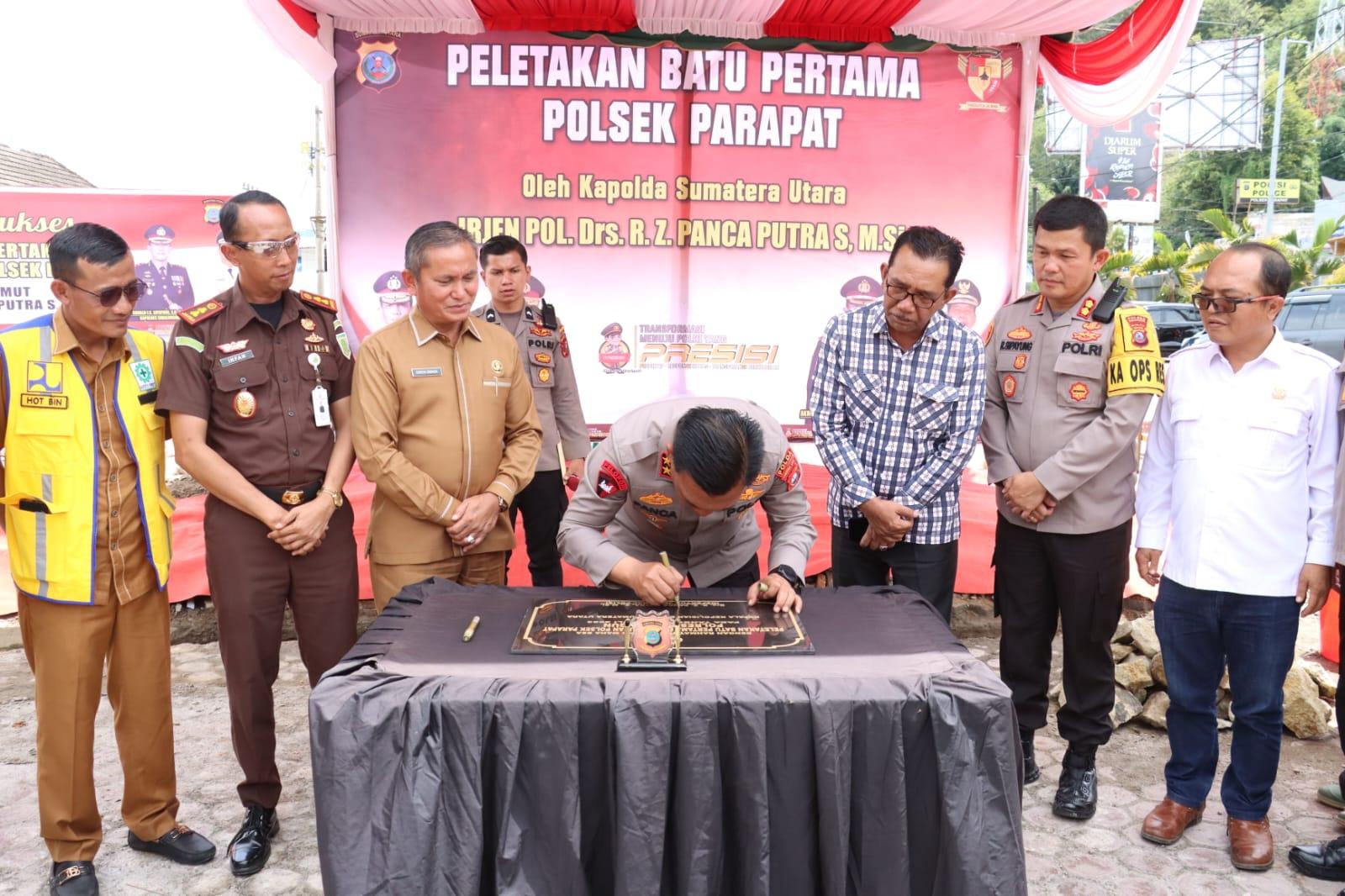 Dalam rangka revitalisasi dan pembangunan Polsek Parapat, Kapolda Sumut Irjen Pol RZ Panca Putra Simanjuntak melakukan peletakan batu pertama, Selasa