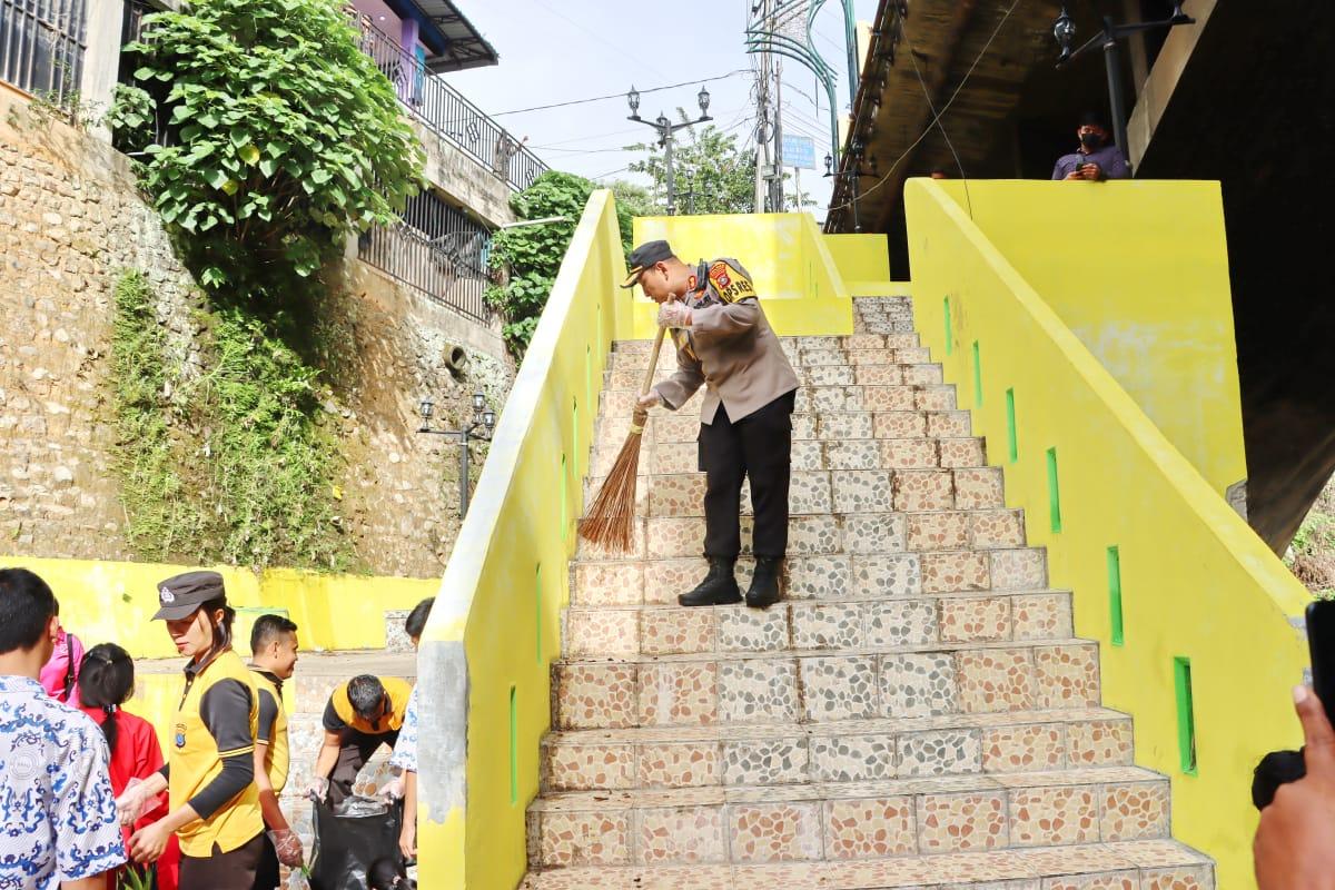 TRIBUN-MEDAN.com, SIDIMPUAN - Kapolres Padangsidimpuan AKBP Dudung Setyawan melakukan kegiatan kebersihan lingkungan.
