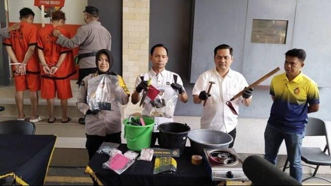 Barang bukti yang diamankan berupa kompor gas, gas LPG 3 kilogram, dua ember, panci, pisau, baskom, pisau, lakban, serbet, tali, palu kecil, kantong kresek, dan ponsel.