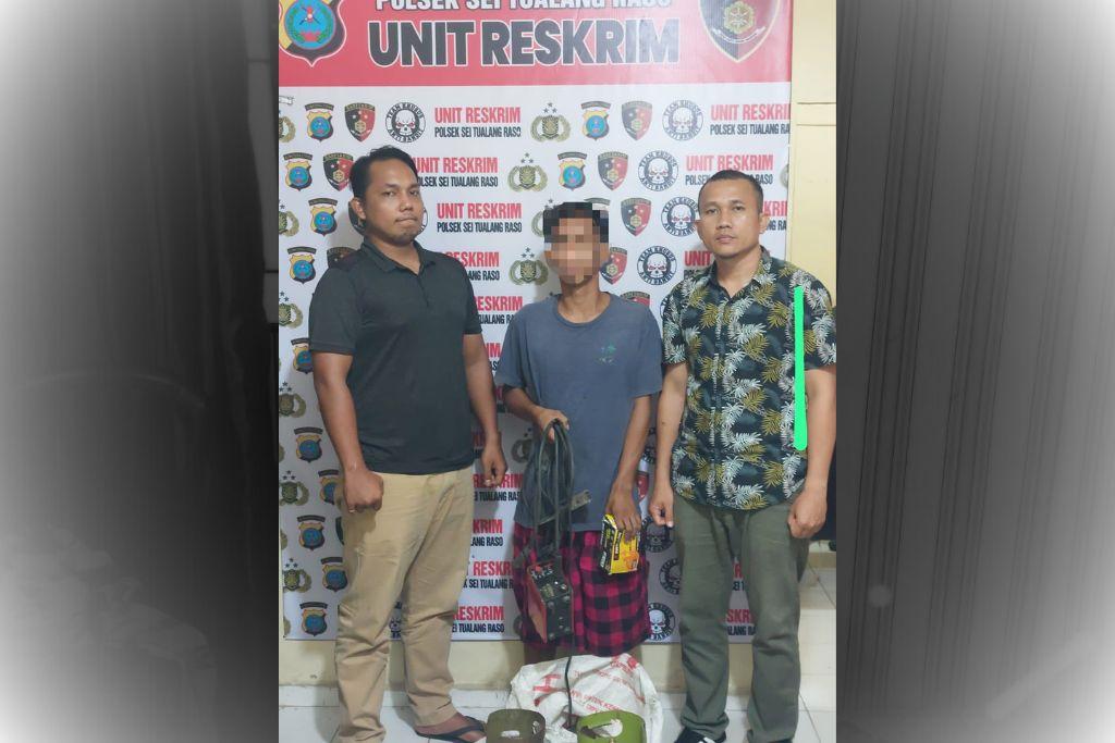 Selanjutnya, berdasarkan info dari masyarakat petugas Satreskrim Polsek Sei Tualang Raso langsung mendatangi lokasi tersebut dan mengamankan pelaku berikut barang bukti hasil curiannya.