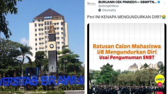 Beredar cuitan di media sosial Twitter soal ratusan calon mahasiswa baru Universitas Brawijaya (UB) mengundurkan diri.