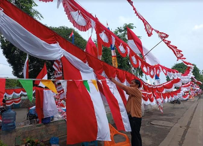 Penjual Bendera Musiman di Medan Sebut Omzet Tahun Ini Menurun