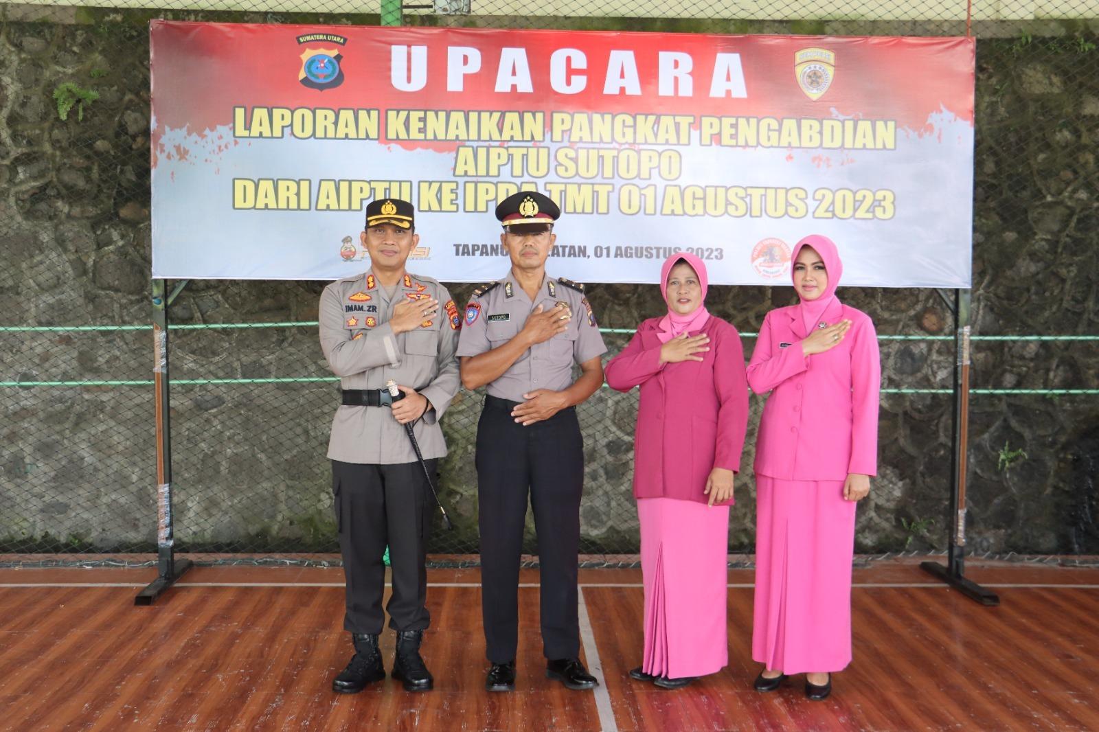 Kapolres Tapanuli Selatan (Tapsel) AKBP Imam Zamroni memimpin upacara kenaikan pangkat personelnya atas nama Sutopo dari Ajun Inspektur Polisi Satu