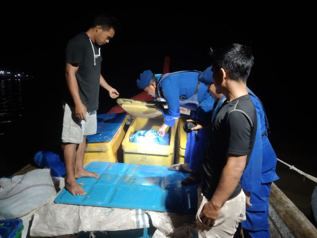 Beberapa menit kemudian Kapal tersebut dapat dihentikan. Dari hasil pemeriksaan diketahui kapal tersebut tidak memiliki nama dan tanpa tanda selar dinakhodai DANI dengan jumlah penumpang lima orang bermuatan fiber berisi ikan namun tidak ada di temukan barang-barang yang ilegal atau yang melanggar hukum.