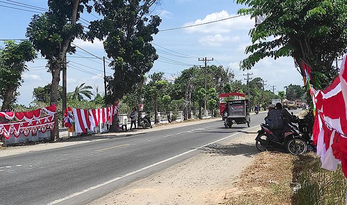 Penjualan bendera merah putih di Jalan Negara, Sergai, hingga kini masih sepi.