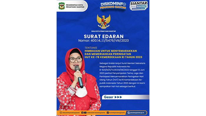 "Khusus kepada Camat se-Kota Pematang Siantar untuk memerintahkan lurah, ke pling untuk mengoordinir pemasangan bendera di masyarakat mulai tanggal 1-31 Agustus 2023, memasang umbul-umbul merah putih, hiasan di tempat-tempat strategis.