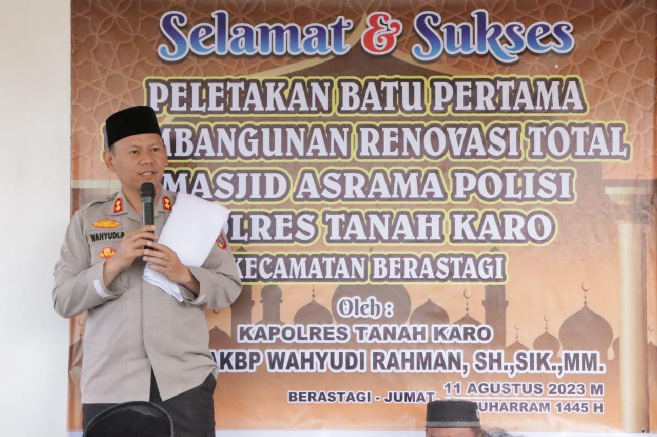 Hal itu seperti diungkapkan Kapolres Tanah Karo AKBP Wahyudi, saat memberikan kata sambutan di acara peletakkan batu pertama pembangunan Masjid Aspol Polres Tanah Karo.