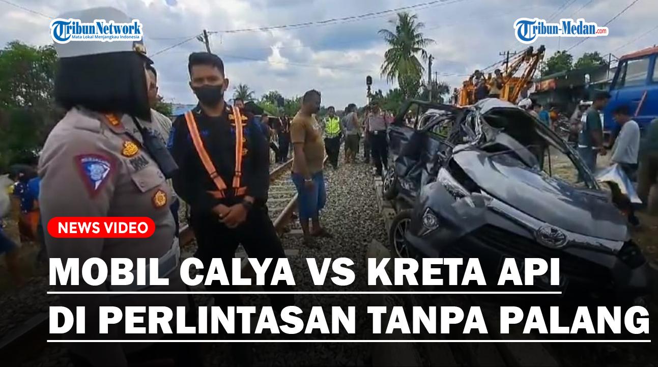 Satu unit mobil Toyota Calya bernomor polisi BK 1983 WU ringsek usai terlibat kecelakaan melawan Kreta Api di perlintasan tanpa palang pintu.
