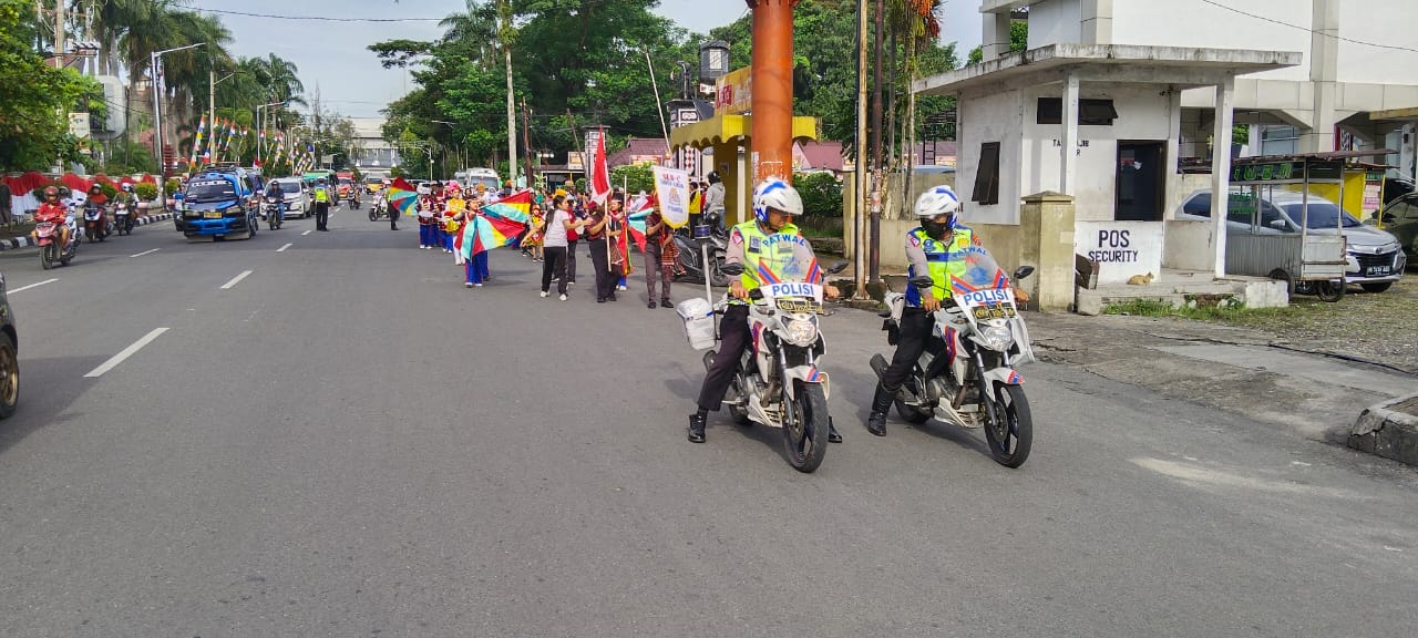 Personil Polres Pematang Siantar berikan pengamanan dan pengawalan dalam kegiatan pawai keliling dari Sekolah Luar Biasa Tunagrahita ( SLB-C ).