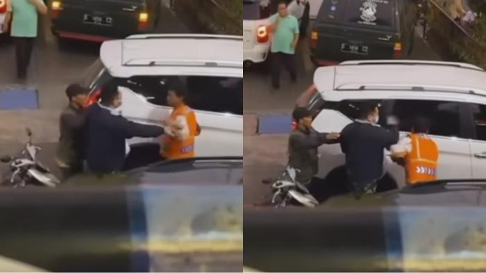 Namun, pria bercelana loreng itu tampak terus menantang tukang parkir.