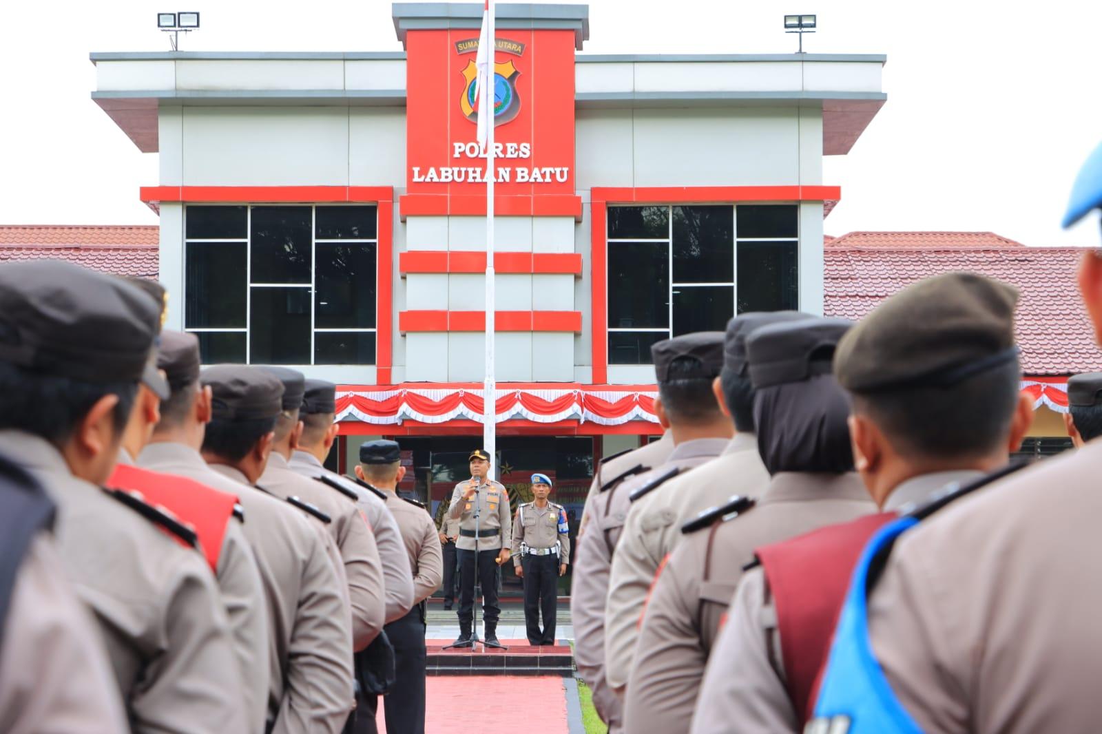 Kapolres Labuhanbatu AKBP James H Hutajulu melakukan pengecekan kesiapan personel Polisi Ramah Warga (RW) dalam menjalankan tugasnya.