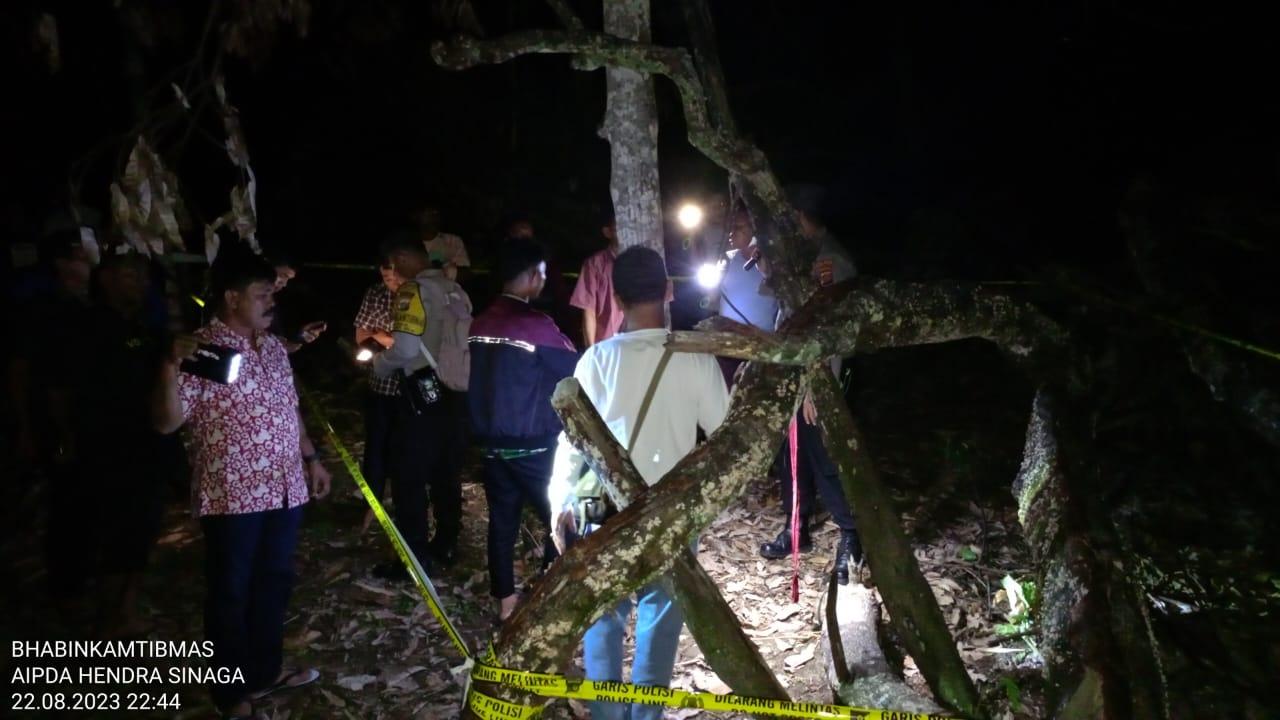 "Korban ditemukan tergantung dengan seutas kain warna merah yang terikat di pohon kuini bekas ditebang," ungkapnya, Rabu (23/8/2023).
