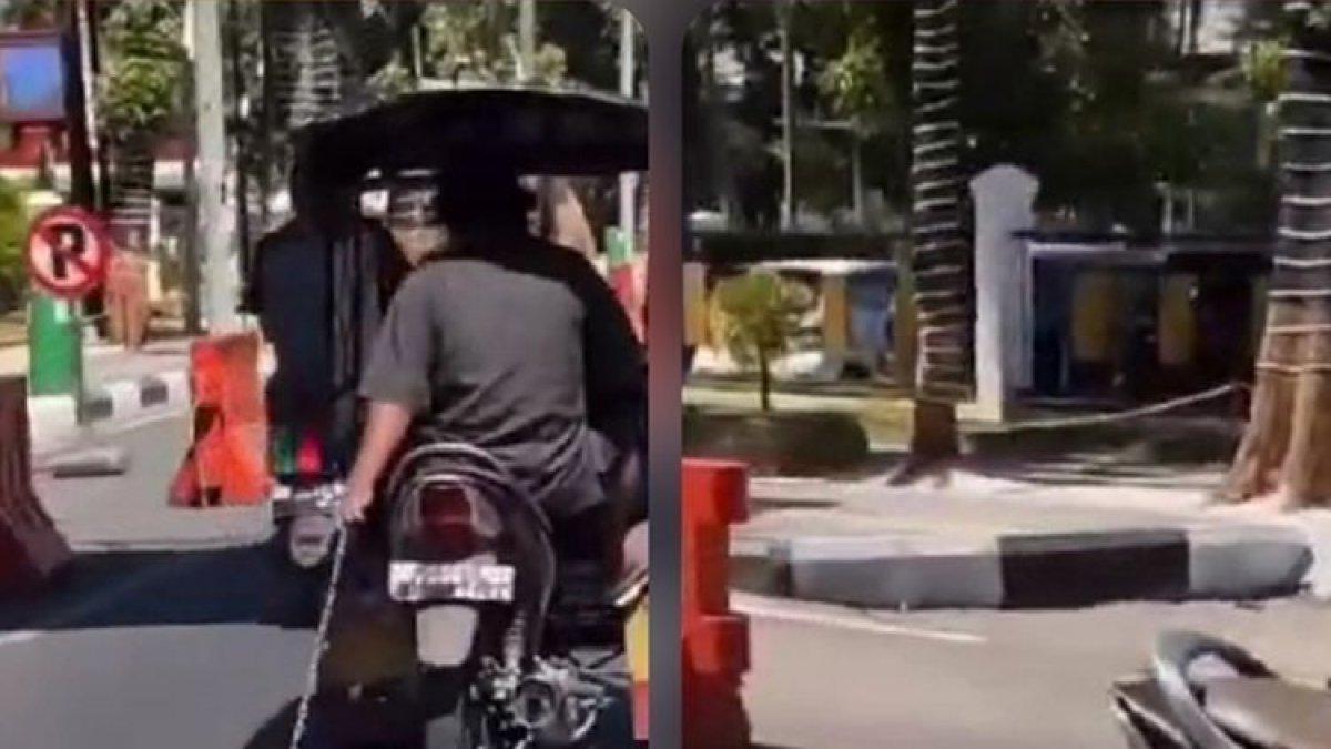 Pengemudi becak bermotor ini kedapatan melakukan penyiksaan dengan menyeret seekor anjing