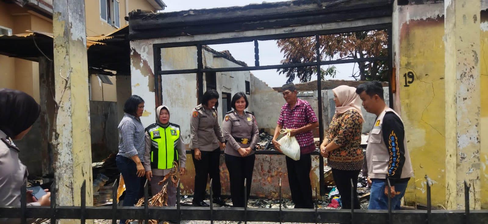 Berbagi Kasih, Polwan Polres Labuhanbatu Bagi Sembako untuk Korban Kebakaran