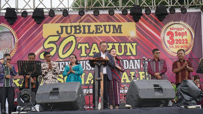 "Jubileum itu adalah sukacita. Jadi mari kita bersukacita atas perayaan Jubileum 50 Tahun Monumen Pusaka Padan ni Raja Sonak Malela," kata Poltak Sitorus mengawali sambutannya.