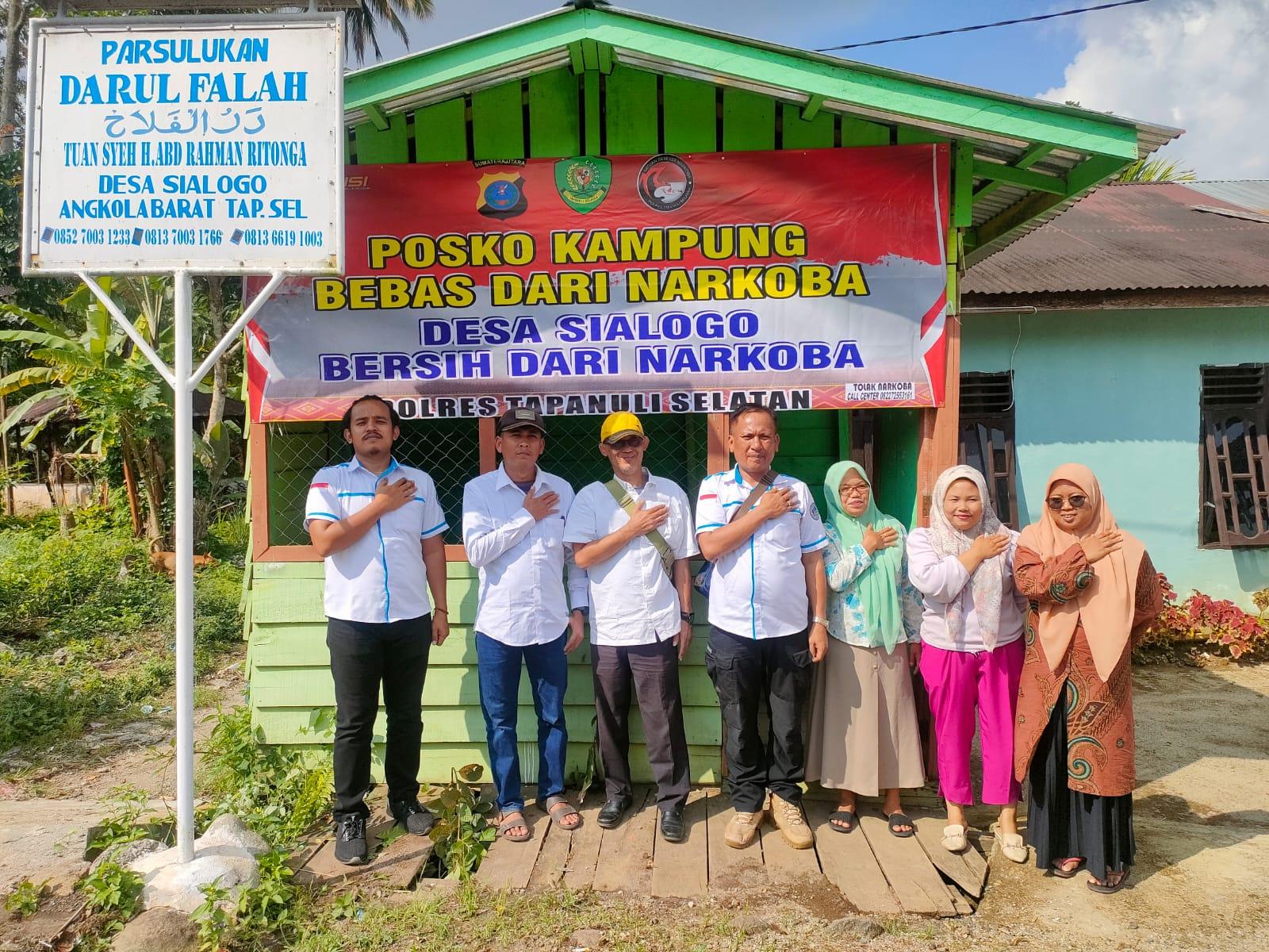 Polres Tapanuli Selatan (Tapsel) mendirikan posko kampung bebas narkoba di Desa Sialogo, Jumat (8/9/2023).
