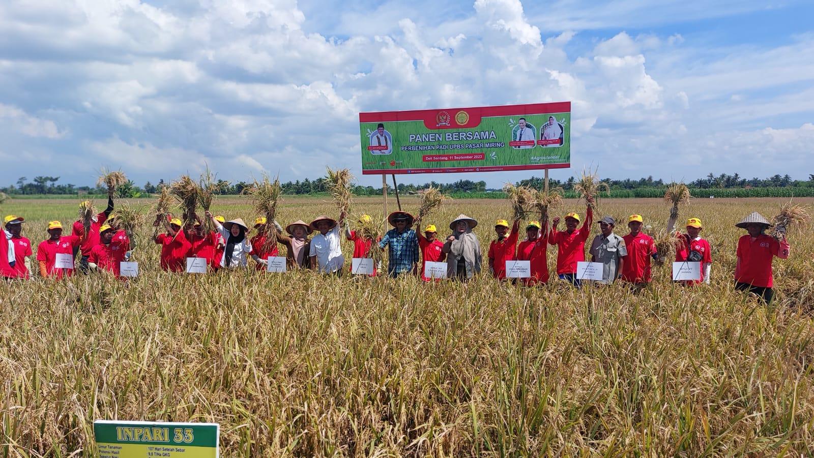 TRIBUNMEDAN.COM - Sekretaris DPD PDI Perjuangan, Soetarto mendampingi Anggota DPR Komisi IV DPR RI Djarot Saiful Hidayat melakukan panen raya pada Inpari IR Nutri Zinc di Desa Pasar Miring, Kecamatan Pagarmerbau, Deliserdang.