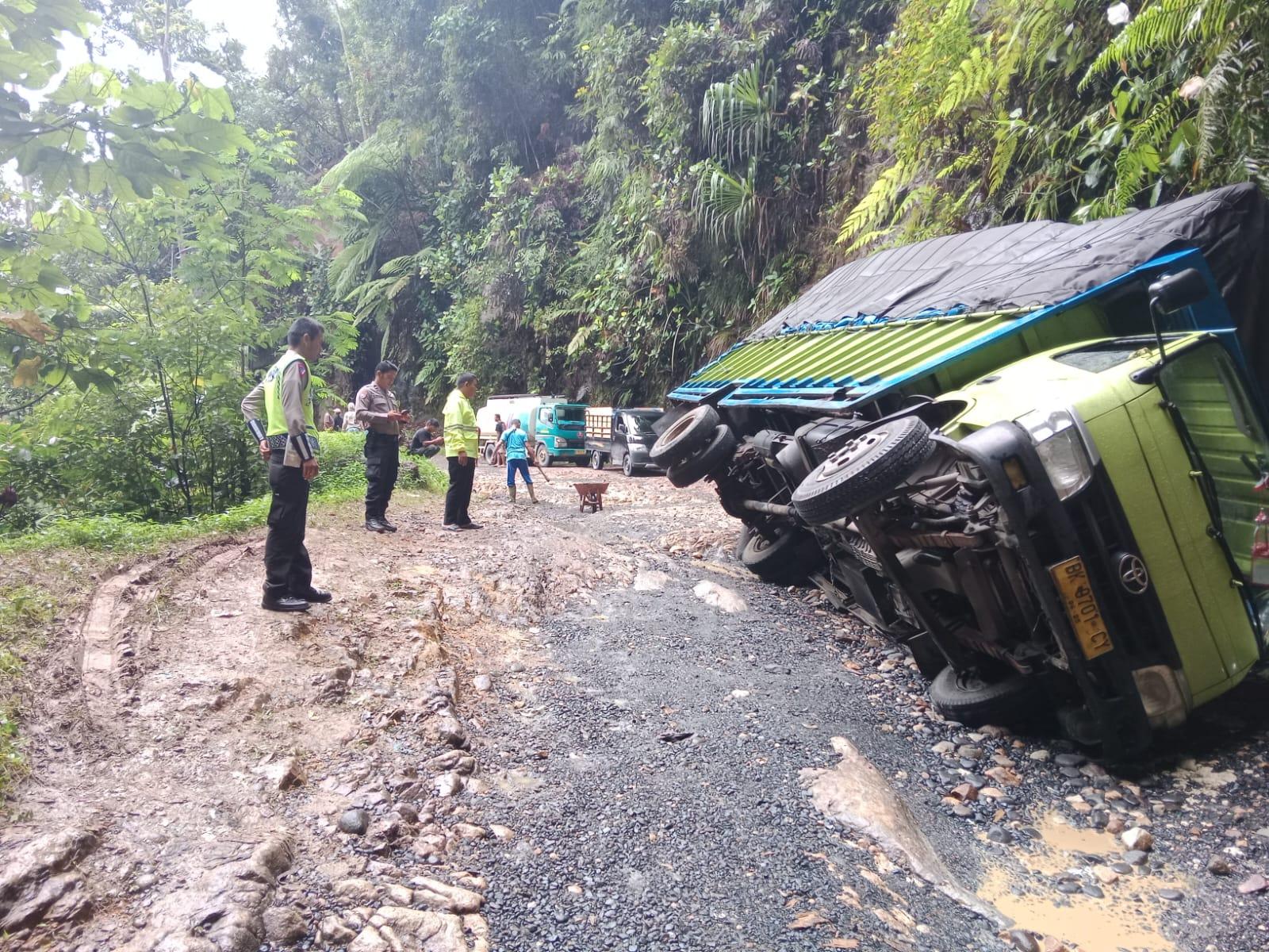 Kelurahan Pondok Batu, Kecamatan Sarudik, selain itu, beberapa truk dan minibus terperosok akibat jalan yang licin di daerah Sitahuis dan Rampah.