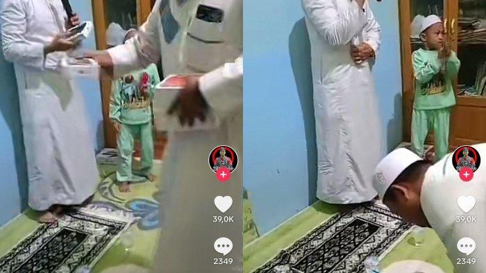 Dalam unggahan viral tersebut tampak para jemaah yang berdiri melingkar sembari membaca sholawat Mahalul Qiyam.