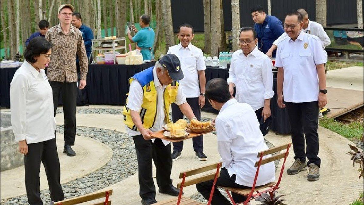 Kemudian terlihat juga Menkeu Sri Mulyani hingga Mensesneg Pratikno, juga ditawarkan sajian yang dibawa oleh Pak Bas.
