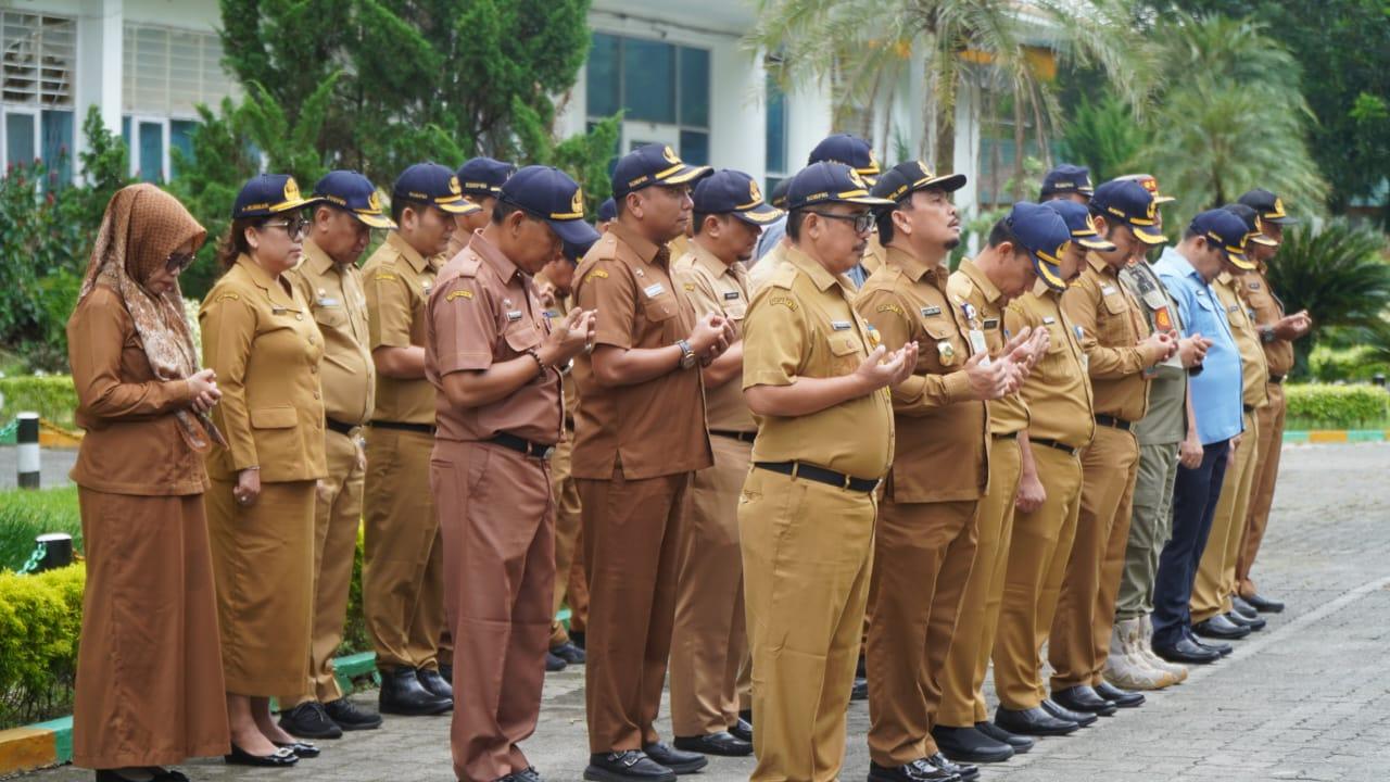 TRIBUN-MEDAN.com, LANGKAT - Plt Bupati Langkat H.Syah Afandin SH diwakilkan oleh Asisten Adm Ekbangsos H.Sukhyar Mulyamin,S.Sos,M.Si menjadi Pembina Apel Gabungan Aparatur Sipil Negara (ASN) di Lingkungan Pemerintah Kabupaten Langkat bertempat di Halaman Kantor Bupati Langkat, Senin (25/9/2023)
