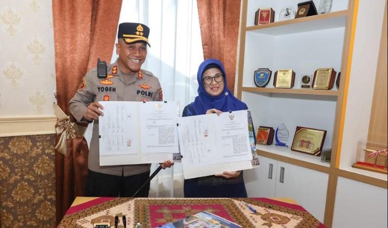 Wali Kota Pematang Siantar, Susanti Dewayani bersama Kapolres Pematang Siantar AKBP Yogen Heroes Baruno meneken Mou terkait kerjasama manfaat CCTV.