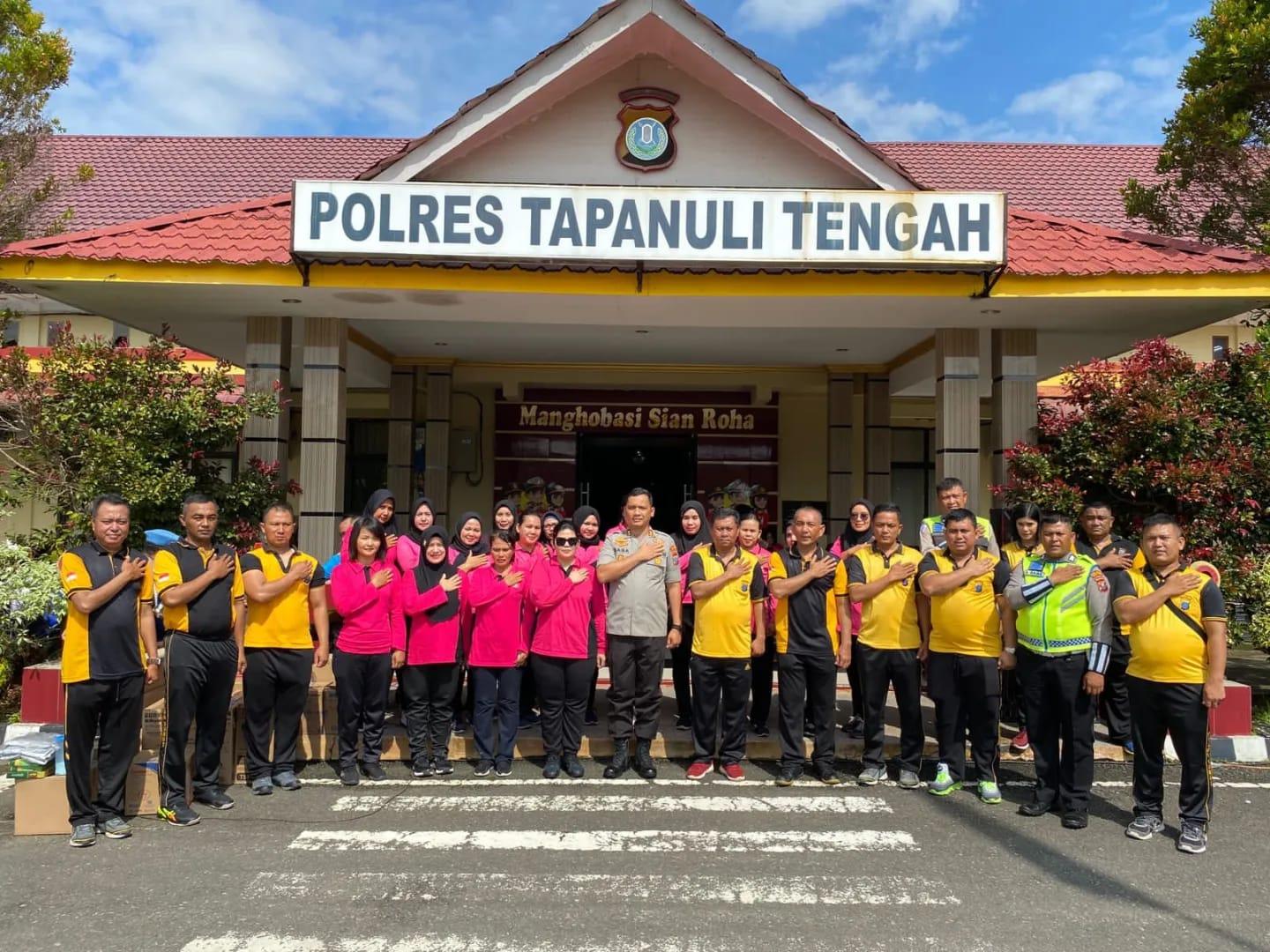 Turut hadir dalam kegiatan itu Kapolres Tapteng AKBP Basa Emden Banjarnahor dan Ketua Bhayangkari Cabang Tapteng Ny Heny Basa serta para personel.
