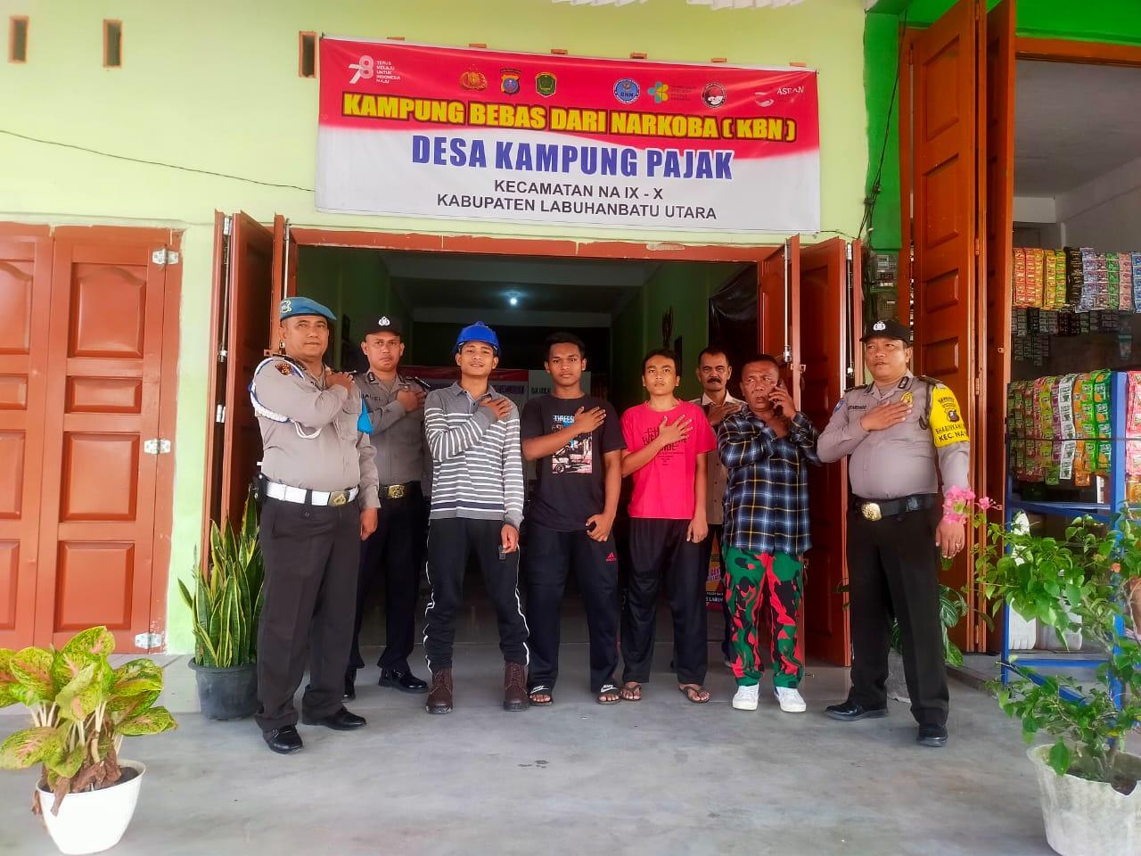 TRIBUN-MEDAN.com, LABURA - Personel Polsek NA IX-X melaksanakan patroli dan sosialisasi akan bahaya narkoba kepada warga di Posko Kampung Bebas Narkoba (KBN) Desa Kampung Rakyat, Kecamatan NA IX-X Kabupaten Labuhabatu Utara (Labura), Jumat (29/9/2023).