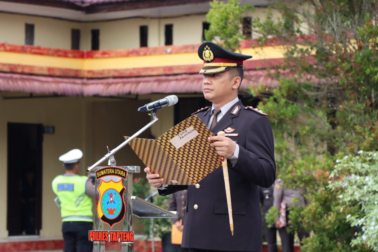 Kapolres Tapanuli Tengah (Tapteng) AKBP Basa Emden Banjarnahor memimpin upacara Hari Kesaktian Pancasila tahun 2023 di Lapangan Apel Mako Polres