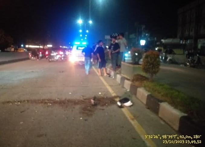 Seorang pengemudi sepeda motor berinisial SF tewas tertabrak mobil pribadi di Fly Over Jamin Ginting, Medan, Senin (23/10/2023) malam.
