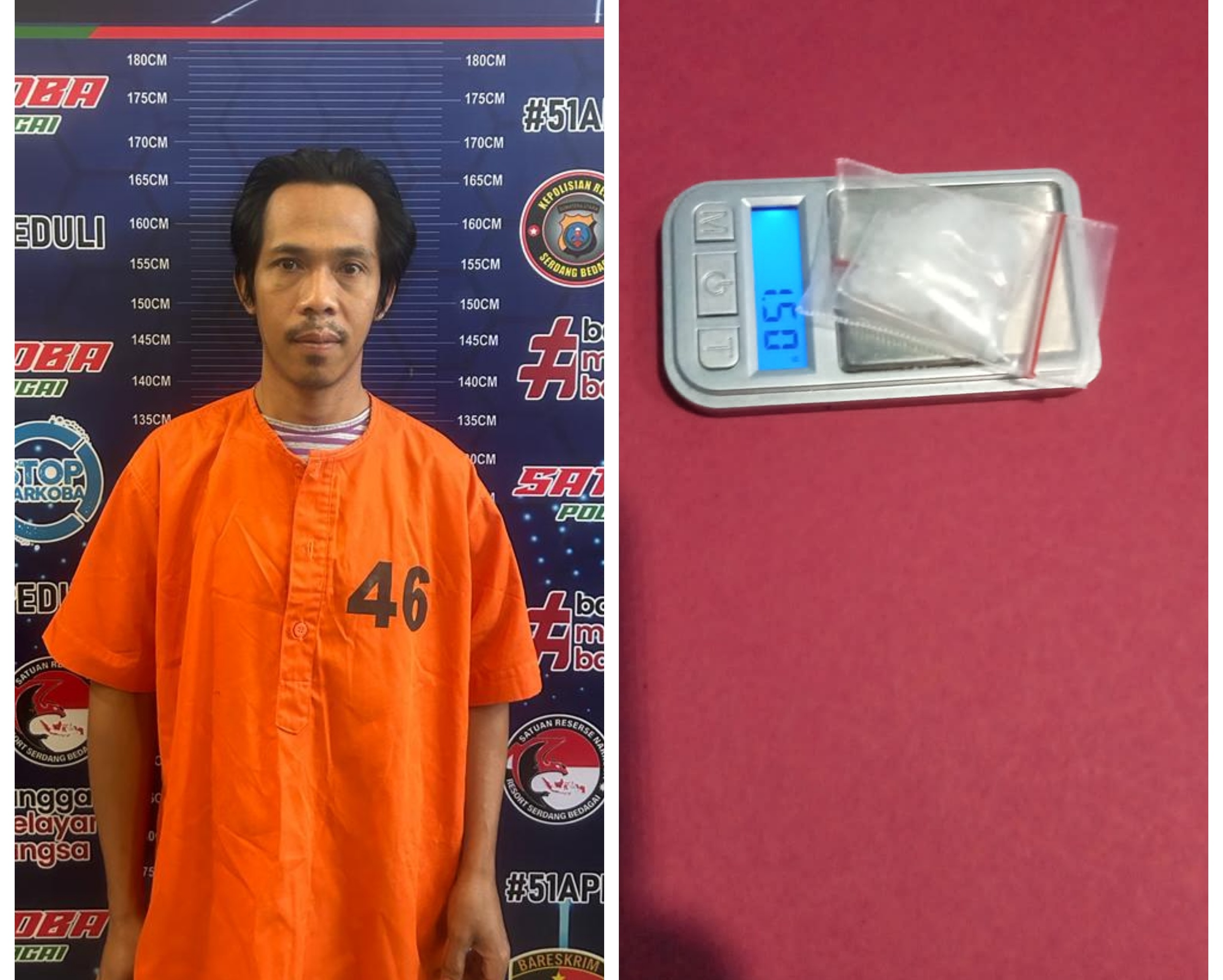 Pelaku yang diamankan berinisial K (32 th), warga Dusun IV, Desa Jati Mulia, Kecamatan Pegajahan, Kabupaten Sergai. Dari tangan tersangka polisi berhasil menyita barang bukti diduga sabu sebanyak 1,50 Gram.