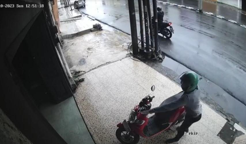 Lupa Cabut Kunci Kontak, Motor Pekerja Toko Pakaian Dilarikan Maling, Pelaku Pakai Helm Ojol