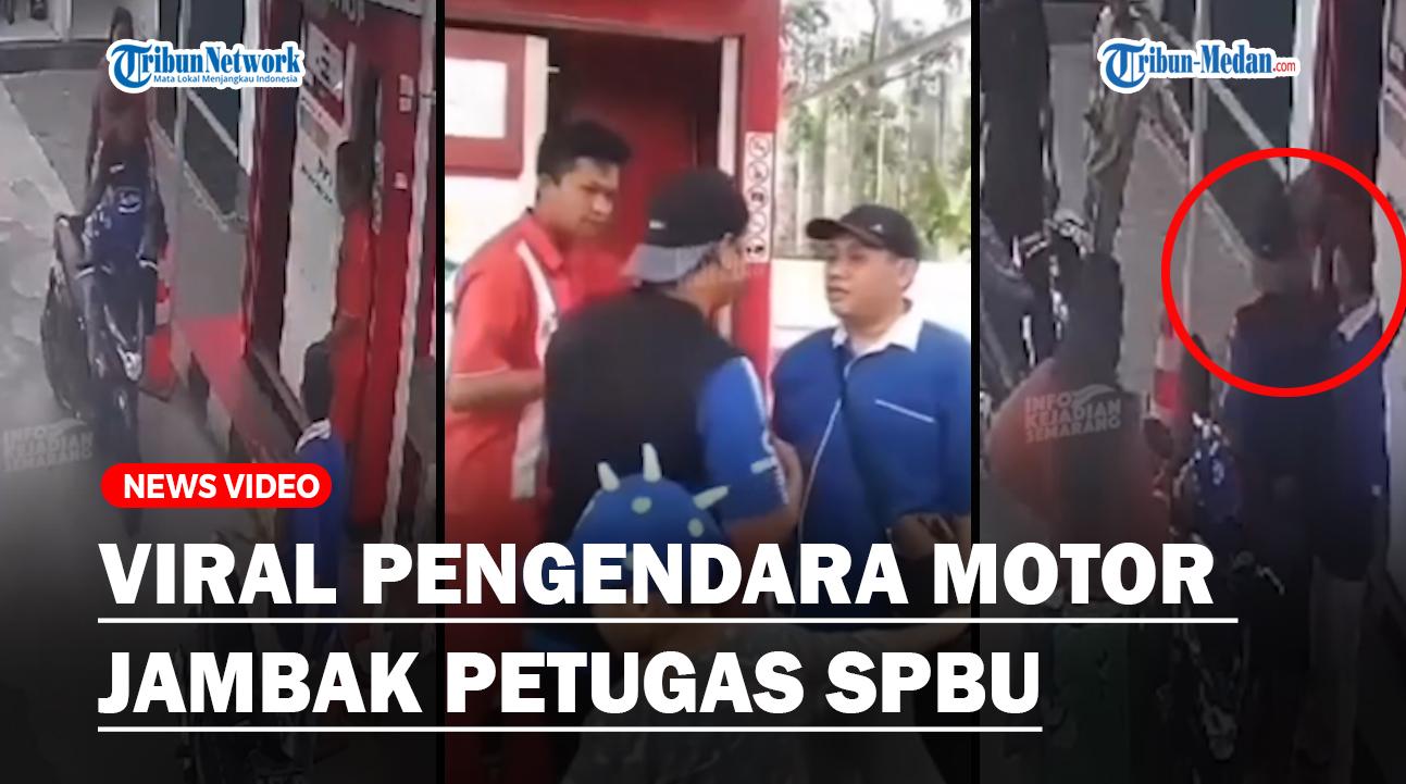Dalam video yang beredar, pengendara motor tersebut terekam menjambak rambut petugas SPBU.
