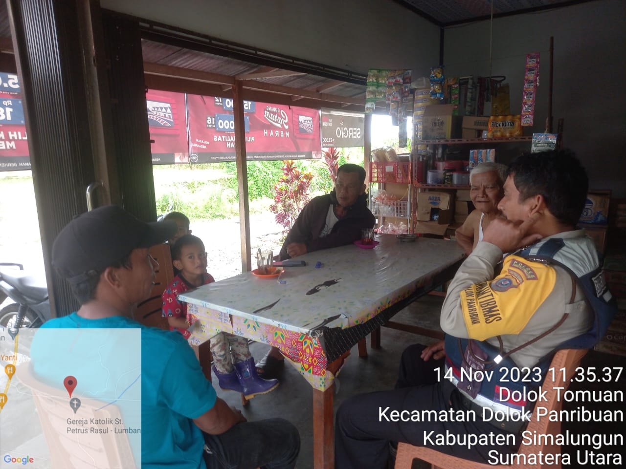 TRIBUN-MEDAN.COM, SMALUNGUN- Bhabinkamtibmas Polsek Dolok Panribuan, Aiptu RP Sidabalok sosialisasi Kamtbmas di warung kopi Raja Daut Samosir diDusun Lumbanri, Nagori Gunung Mariah, Kecamatan Dolok Panribuan, Kabupaten Simalungun , Selasa (14/11/2023) pukul 10.00 WIB. Aiptu Sidabalok mempererat hubungan silaturahim antara polisi dan warga.