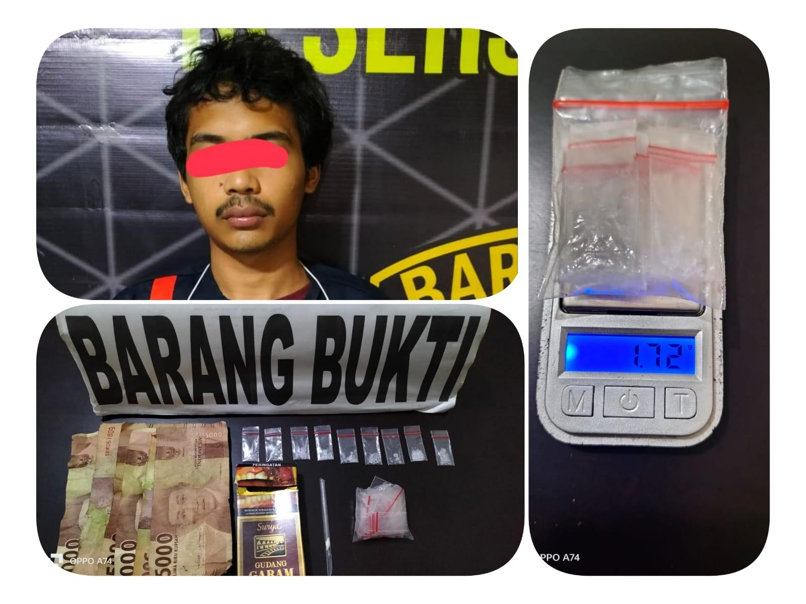 "Selanjutnya dilakukan pemeriksaan terhadap tersangka dan petugas menemukan barang bukti narkoba padanya berupa 1.72 gram sabu, juga uang tunai sebesar Rp 30.000.- (Tiga Puluh Ribu Rupiah )" ujar parlando.