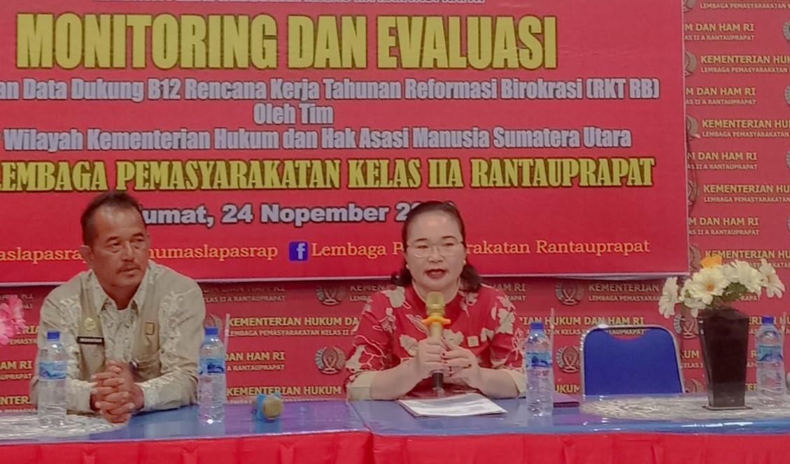 TRIBUNMEDAN.COM, MEDAN - Kantor Wilayah Kementerian Hukum dan HAM Sumut melakukan monitoring dan evaluasi pemenuhan data dukung RKT RB B12 di Lapas Kelas II A Rantauprapat.