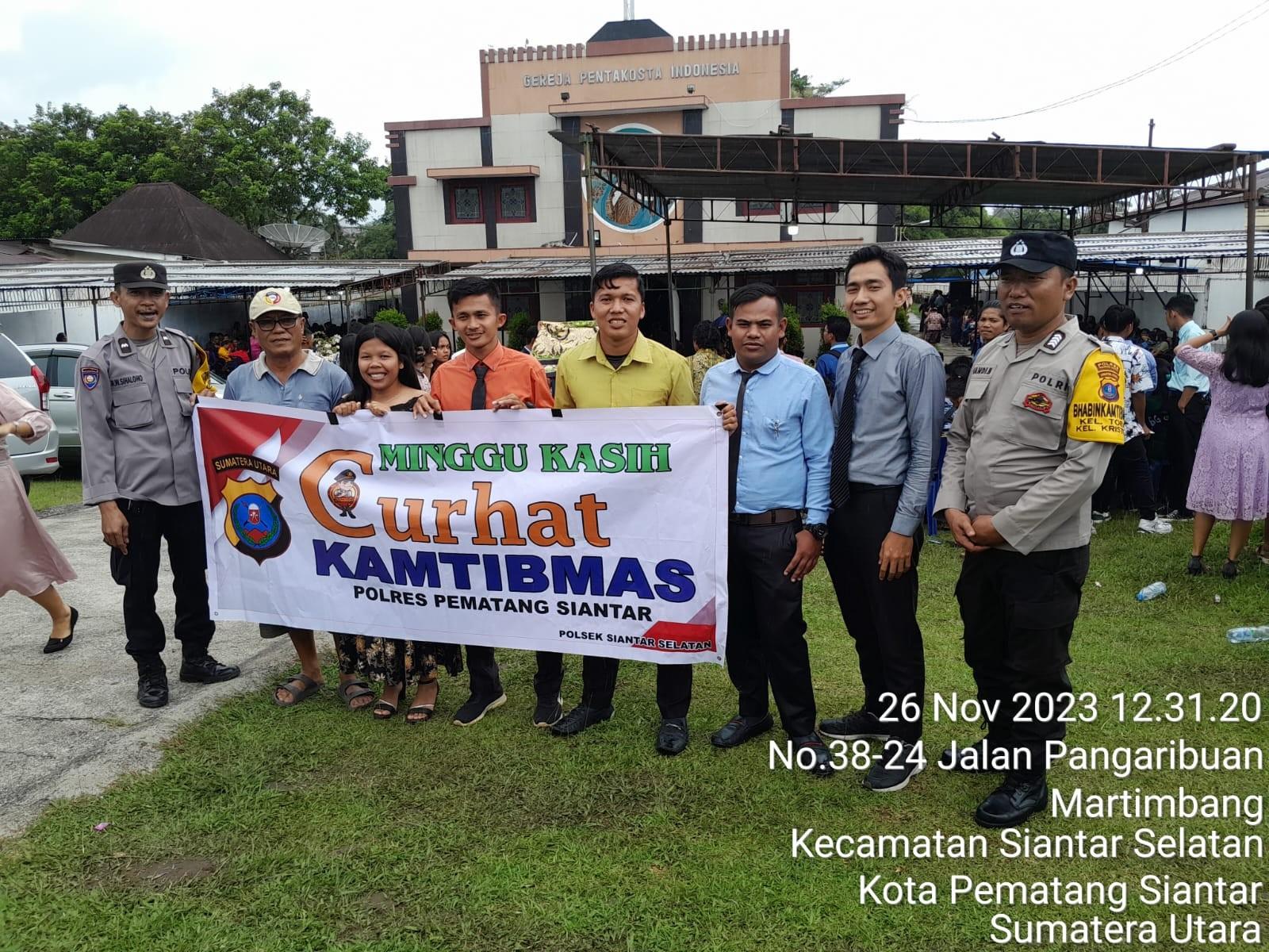 TRIBUN-MEDAN.COM, PEMARANG SIANTAR-Dalam mewujudkan wilayah kondusif, Personil Polsek Siantar Selatan laksanakan Minggu Kasih Curhat Kamtibmas di Gereja Pentakosta Indonesia (GPI) Jalan Pangaribuan Kelurahan Martimbang Kecamatan Siantar Selatan Kota Pematang siantar, Minggu (26/11/2023).