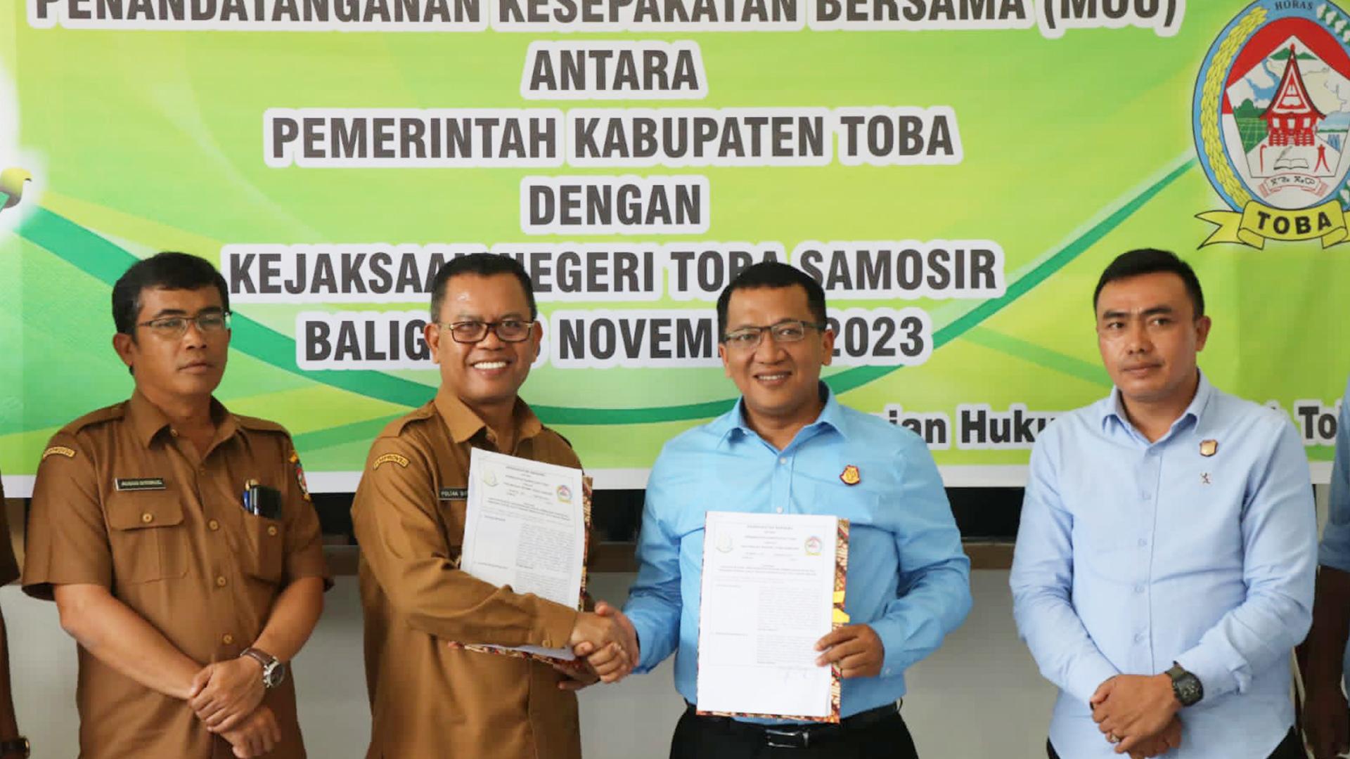 Bersama Kejari Toba Samosir, Bupati Toba menandatangani MoU antara Pemerintah Kabupaten Toba dengan Kejaksaan Negeri Toba Samosir (28/11/2023).