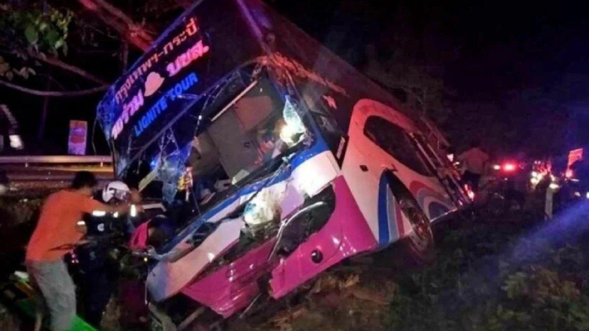 Namun, ketika melaju di wilayah Prachuap Khiri Khan, bus menabrak pohon di pinggir jalan raya sekitar pukul 01.00 dini hari waktu setempat.