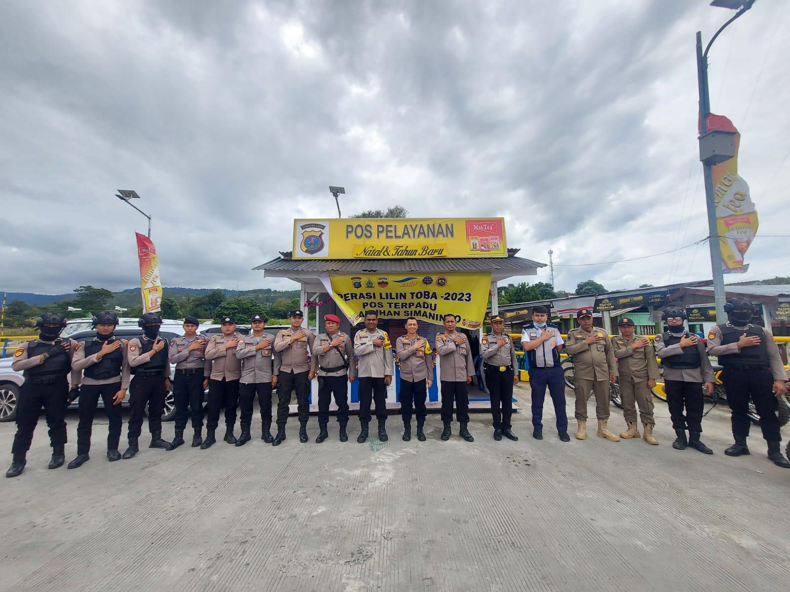 Kapolres Samosir mengecek kehadiran personil Pos. Dari Pos Terpadu Pelabuhan Ambarita Kecamatan Simanindo, Kapolres Samosir melaporakn situasi Kamtibmas.