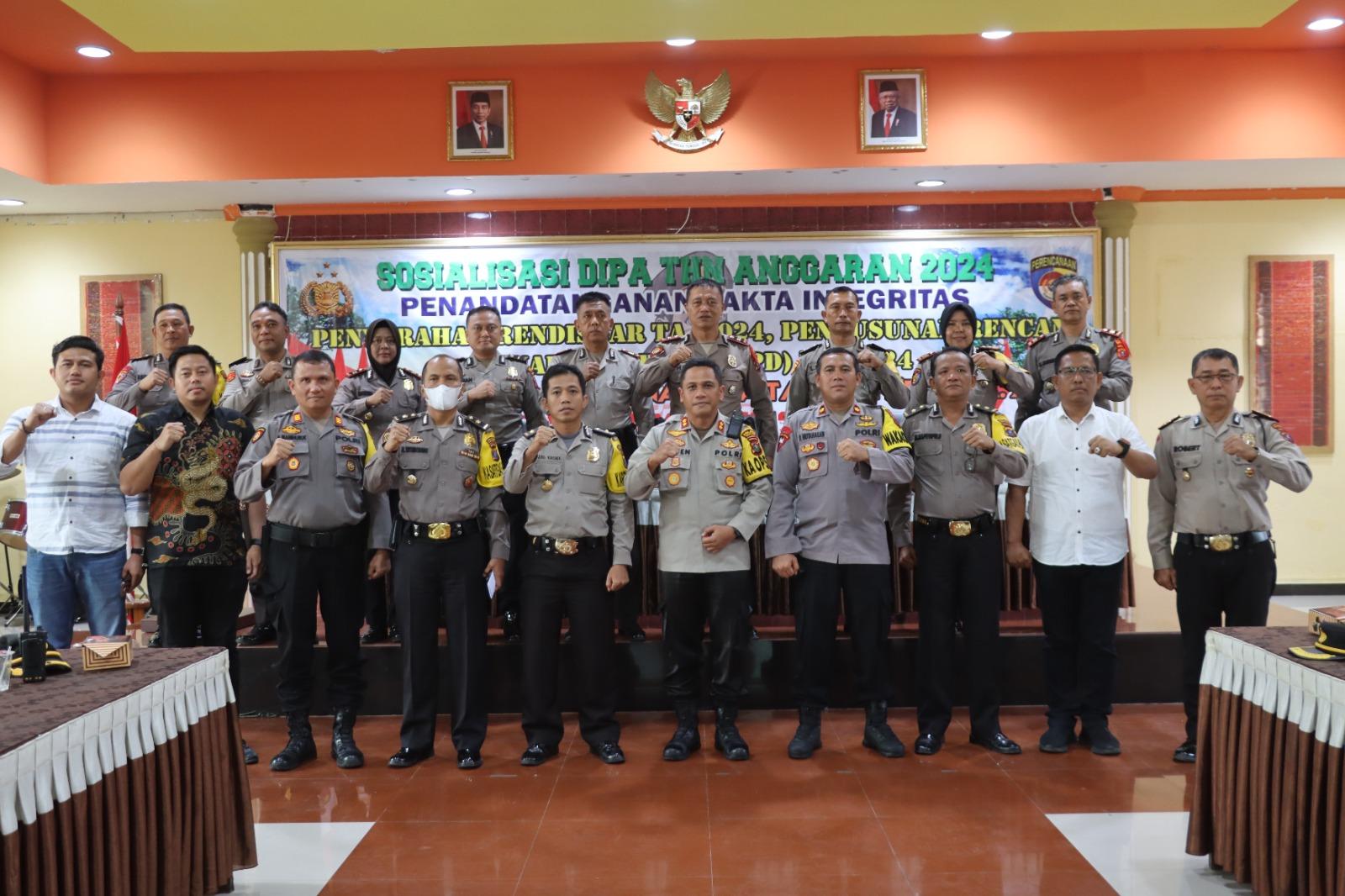 Bersamaan dengan sosialisasi itu Kapolres juga penandatanganan pakta integritas penyerahan rendisgar 2024, penyusunan rencana penarikan dana (RDP) 2024 dan penyusunan rencana kerja tahunan (RKT)2024 Polres Pematangsiantar yang diikuti seluruh kabag, kasat dan kapolsek.