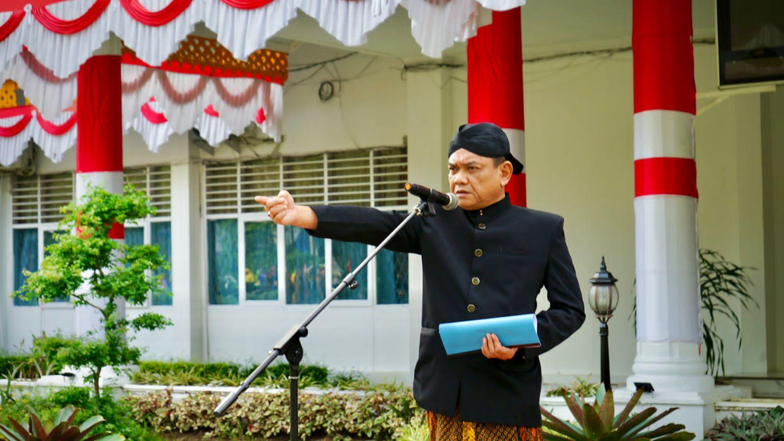 TRIBUN-MEDAN.com, LANGKAT - Plt Bupati Langkat H.Syah Afandin SH di wakili Asisten Pemerintahan dan Kesejahteraan Rakyat Drs. H.Mulyono, M.Si menjadi pembina apel gabungan di lingkungan Pemerintah Kabupaten Langkat, di halaman kantor Bupati Langkat, Senin (15/1/2024).