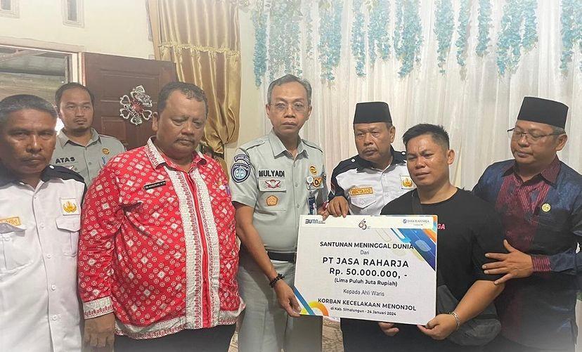 Jasa Raharja Cabang Sumatra Utara menyerahkan uang santunan korban meninggal dunia dalam kecelakaan yang terjadi di Pamatang Raya, Rabu (24/1/2024) kemarin. Nilai yang diberikan untuk kelima korban meninggal dunia masing-masing adalah Rp 50 juta.