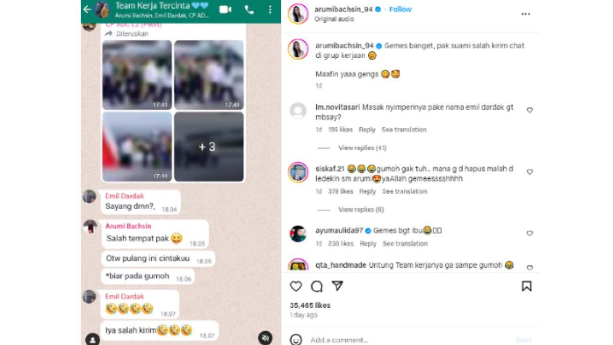 Terbaru Arumi Bachsin juga sempat menunjukan sisi romantis dalam sebuah pesan chat sang suami yang salah kirim ke whatsapp grup kerja kantor.